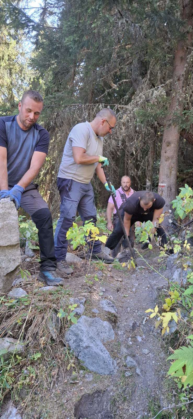 • Подновяване на маркировката по маршрута и почистване на трасето от паднали дървета и камъни, заедно с местните доброволци.