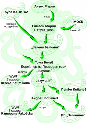 Вътре в нея има представители на няколко сдружения от Зелени Балкани, начело с Българско дружество за защита на птиците и представител Милена Дикова. Бившата служителка на Министерството на земеделието, която менажираше ос 2 - Вяра Стефанова сега е национален координатор в същото това Българско дружество за защита на птиците. Много мирише на конфликт на интереси и всички тези връзки трябва да бъдат разследвани от съответните органи.